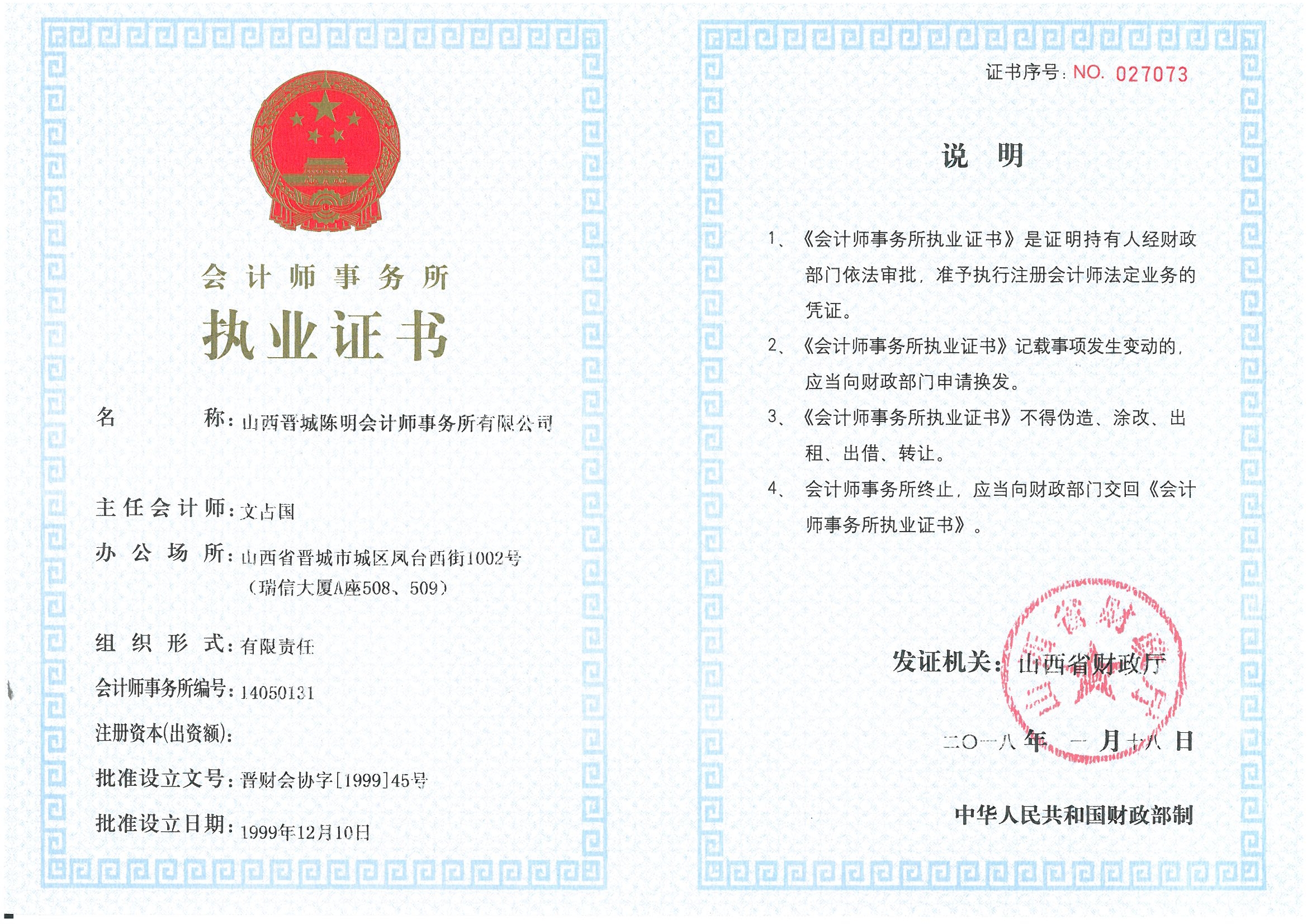 祝賀山西陳明會(huì)計(jì)師事務(wù)所有限公司獲山